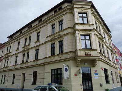 Dům se zdobeným rohovým vchodem a bohatě zdobenou fasádou je dnes využíván jako služebna obvodního oddělení policie České republiky